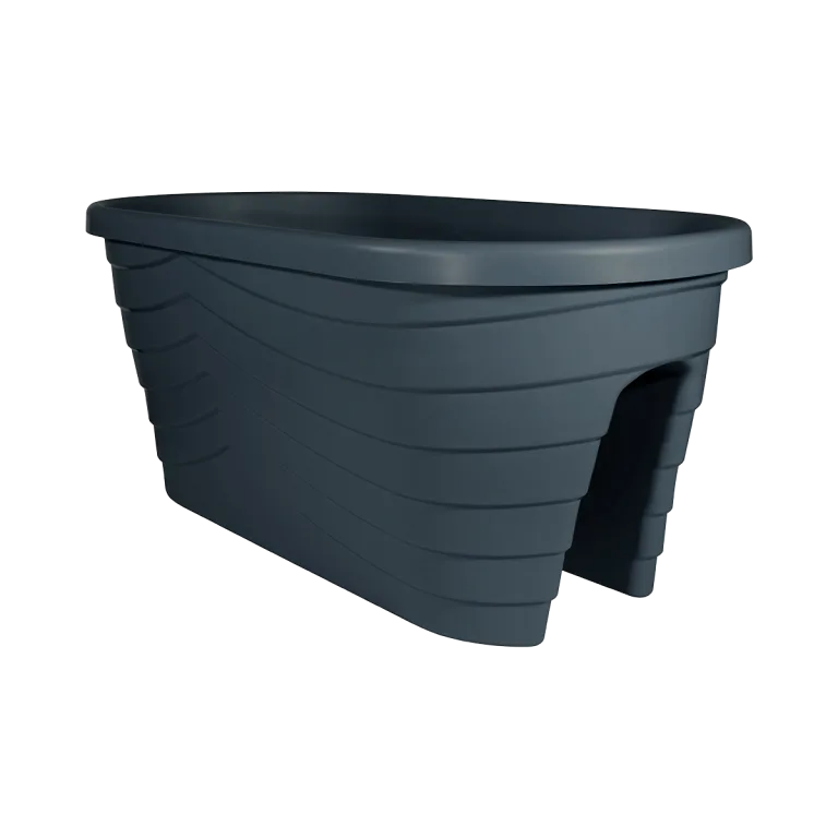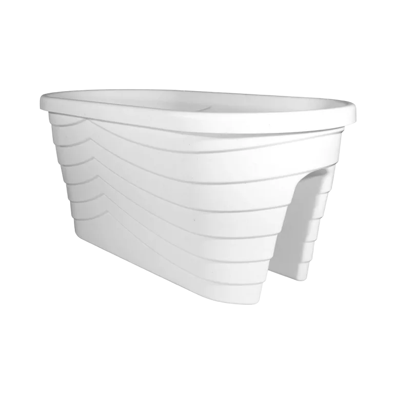 Moderno cvetlično korito za balkon. Stabilna konstrukcija in ojačan rob preprečujeta deformacije.