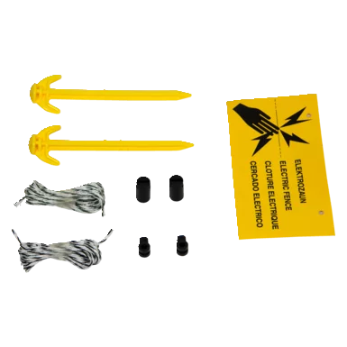 Začetek mreže je označen z drugačno obarvanim izolatorjem palic, da boste lažje postavili mrežo in preprečili zapletanje le te. Poleg tega je zaradi robustnih objemk iz nerjavečega jekla več mrež mogoče enostavno in brez dodatnih orodij povezati. V primeru poškodbe mreže ste optimalno opremljeni s kompletom za popravilo, ki vključuje zatiče in opozorilno ploščico – za večjo varnost vaših živali!