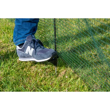Ni zaman, da se mejna ograja imenuje tudi mobilna ograja; lahko jo postavite in razstavite v samo nekaj minutah, kjerkoli in kadarkoli. Skratka, mejna ograja Horizont Fix je idealna za vaš vrt ali kamp. Psa lahko spustite na vrt in nimate več težav z ogorčenimi gosti kampa ali uničenimi gredicami. Če ograjo uporabljate za pse, mačke ali druge male živali, upoštevajte, da je ograja le preprosta ovira. Prosimo, bodite pozorni na obnašanje (grizenje, praskanje) živali ob ograji, predvsem se pogosto podcenjuje skakalna sposobnost živali. Ne puščajte svojih živali brez nadzora. Te vrste mreže ni mogoče elektrificirati.