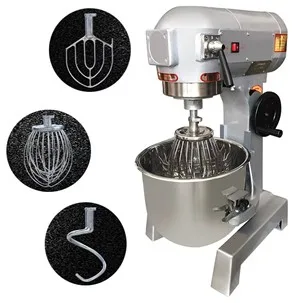 Komercialni mešalnik za kreme in testo iz nerjavečega jekla z 3 hitrostmi in profesionalnimi nastavki (spiralni kavelj, metlica, ploščati mešalnik). Odličen za testo, kreme in nadeve.